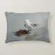 Em uma praia atlântica da costa, uma gaivota está contemplativa na areia molhada, ao lado de um grupo de alga.