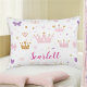 Uma almofada macia para raparigas com uma design de coroa princesa rosa com espaço para personalizar um nome. Uma adorável peça decorativa para quartos ou áreas de brincadeira.