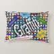 Esta almofada de sotaque apresenta um design que simula um grafite. O design é lúdico e contém saudações em diferentes idiomas sobre vibrantes salpicos coloridos e derrames sobre o fundo de uma cerca simulada de arame. Todos os elementos são personalizáveis. Você pode alterar suas cores e posições e remover detalhes indesejados. Você também pode remover os textos e substituí-los pelo que preferir, usando a ferramenta de texto do Zazzle.