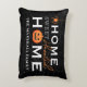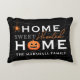 Bem-vindos aos seus convidados com este travesseiro decorativo lombar personalizado e divertido assustador do Halloween. O design de tipografia na moda apresenta a redação "Home Sweet Haunted Home" com texto personalizado para o nome da sua família e os acentos de uma assustadora abóbora-de-jack-lanterna, aranha solta e aranha-de-aranha. Inclui um esquema de cores preto, cinza, branco e laranja.