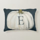 Bonita decoração de outono com um design de abóbora pintado de marfim em um fundo azul escuro de índigo com uma inicial personalizada na frente.