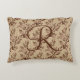 Almofada Decorativa Inicial do Monograma em Script Rosa Marrom Folhas
