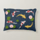 Linda ilustração minimalista do vetor de peixes koi japoneses coloridos nadando entre os lírios de água de uma lagoa. Koi é uma carpa de variedade ornamental bem colorida domesticada no Japão.