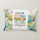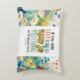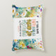 Travesseiro decorativo com citações inspiradoras Escritura Cristã apresenta uma parte da Bíblia Verse Matthew 17:20, nas palavras de Jesus, "Se você tem fé tão pequena quanto uma semente de mostarda, nada será impossível para você." É enquadrado com uma bela arte floral de aquarelas, incluindo flores simples, brancas, cor-de-rosa e amarelas, num fundo azul.