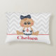 Para um olhar náutico, este travesseiro de sotaque bonitinho apresenta uma menina vestida para um dia na praia com pequena âncora vermelha e arco bolinhas em seu cabelo. O plano de fundo contrastante é um padrão de faixas de divisa de cinza clara para estilo adicionado. Personalize este item editando o nome do exemplo com o nome do seu filho. O adorável desenho animado é cortesia de Kristi W. Designs.