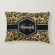 Ouro quico e travesseiro de destaque de impressão leopardo preto com nome personalizado e modelo de monograma. Um padrão de impressão animal de safari giro e tendencioso veio com seu próprio pedaço de personalização.