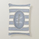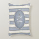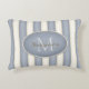 Este travesseiro elegante com cinzas de ardósias largas e faixas de creme mostra o seu monograma e o seu nome dentro e quadro oval.