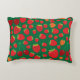 Padrão sem costura com morangos em fundo verde. Um presente de excelente para todos. Produtos de qualidade. Olhe bem no travesseiro.