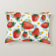 Este travesseiro se rompe com um padrão brilhante e lúdico de morangos e minúsculas margaridas amarelas, espalhadas por salpicos de água azul sonhadoras. É um pop de cor fresco que traz uma vibração alegre e alegre para qualquer sala! 💛 🍓 💙