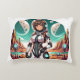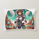 Astronauta feminina está em um planeta vermelho próximo a robôs e luas. Um design muito adequado para decoração para fazer com que pareça mais estética.