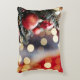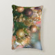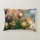 Travesseiro de Natal com imagens de árvore de Natal e ornamentos.