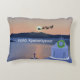 Este travesseiro de sotaque de Natal mostra Papai Noel voando sobre Santorini, grego.