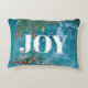 Cruzando ondas azuis profundas no fundo com coníferas e bagas de Natal moldando a palavra "JOY". Um belo Natal temia design litorâneo ideal para o Natal no Verão ou para as celebrações do Natal litorâneo.
