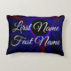 Crie um presente humorístico para si mesmo ou para um amigo com este nome mude o travesseiro de sotaque geométrico. Este produto apresenta a personalização do texto do lado frontal, do primeiro e do sobrenome. Na parte de trás do travesseiro, troque as primeiras letras da sua frente e sobrenomes para criar um novo nome interessante que você pode mostrar aos amigos. Aproveite um presente colorido que apresenta um tema triangular geométrico de cor azul vermelha. Compre os travesseiros de lançamento e redondo para completar o conjunto.