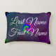 Crie um presente humorístico para si mesmo ou para um amigo com este nome mude o travesseiro de sotaque geométrico. Este produto apresenta a personalização do texto do lado frontal, do primeiro e do sobrenome. Na parte de trás do travesseiro, troque as primeiras letras da sua frente e sobrenomes para criar um novo nome interessante que você pode mostrar aos amigos. Aproveite este presente colorido que apresenta um tema central geométrico fundido. Compre os travesseiros de lançamento e redondo para completar o conjunto.