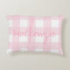 Personalize este travesseiro com padrão xadrez de búfalo rosa e branco, no estilo fazenda, adicionando um nome. O design é o mesmo na frente e no verso do travesseiro. Este design combina com uma sala de estar, dormitório ou berçário com tema fazenda, primavera ou chique.