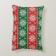 Scandinavian-inspired faux-knit pattern of snowflakes, diamonds, and festive stripes in red, green, white, and gold.