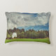 Travesseiro de destaque com uma foto de estilo vintage da paisagem montanhosa. Nuvens brancas majestosas, picos de montanhas azuis, observatório astronômico, floresta e prados verdes. presente de na moda para entusiastas, sonhadores e aventuras ao ar livre. Este travesseiro de Ênfase funcionará especialmente bem com o país, o estilo rústico e ecológico da decoração.