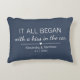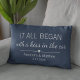 Onde tudo começou... Almofada fofa com o local e a data em que se conheceram, com um coração adorável. Escolha sua cor e personalize este design personalizado com seus próprios nomes e texto. Presente perfeito para contar sua história de amor no Dia dos Namorados, seu Aniversário ou Casamento, e celebrar o início de algo especial.