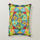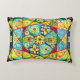 Padrões geométricos vibrantes enchem a imagem, apresentando círculos, triângulos e espirros em um caleidoscópio de cores que incluem azul, verde, amarelo e vermelho. A intrincada design cria um sentido de simetria e equilíbrio.