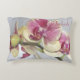 Lindas orquídeas em pinks e creme com verde e cinza. Personalize o texto para se adequar ao seu estilo de decoração, ou o texto também é removível neste travesseiro com flor de designer.