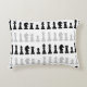 Travesseiro clássico de xadrez preto e branco para amantes do xadrez, com figuras de xadrez em um padrão geométrico. Design de peças de xadrez modernas