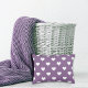 Um travesseiro de sotaque com um padrão bolinhas de mini corações brancos em um fundo lilático francês.