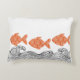 Travesseiro decorativo de peixes e ondas. Os peixes são fundidos numa laranja suave do terracota e decorados com um delicado padrão floral, acrescentando um toque caprichoso, inspirado no Japão. As ondas abaixo são ilustradas com linhas pretas finas no estilo tradicional de bloco de madeira.