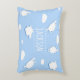 Personalised baby blue pillow with whimsical pattern of fluffy clouds and clouds in the shape of sheep.