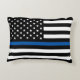 Este travesseiro apresenta uma bandeira americana de linha azul fina e negra da polícia branca, juntamente com o nome de um oficial para você personalizar.