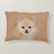 A jovem corça bonito ou a laranja coloriram Pomeranian enfrentam em um travesseiro decorativo retangular matchingly colorido dos amantes do cão do fundo