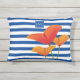 Ouro de laranja e papoila vermelha pop contra faixas azuis e brancas profundas para estilo chic de verão ousado elegantemente terminou com seu monograma dentro um quadrado azul escuro pequeno e clássico. ♡ Idyllfire