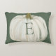 Bonita decoração de outono com um design de abóbora pintado de marfim em um fundo verde de floresta escura com uma inicial personalizada na frente.