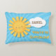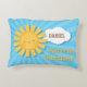 Um travesseiro de crianças bonitinhas para deixá-los saber o quanto eles significam para os pais. Lê-se "Você é meu Sol!", o que não é editável. Design é ilustrado com um belo sol brilhando seus raios solares lançando uma explosão solar no fundo azul. Espaço na pequena nuvem para personalizar com o nome da criança. Desajeite o quarto de crianças e o berçário de bebês com este travesseiro decorativo alegre e brilhante!