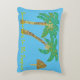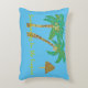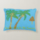 Mosaico, desenho gráfico, de uma ilha, com dois coqueiros, e cabana, mostrados com a frase "Summering In The Tropics" - em cores de; verde, amarelo, turquesa, azul, esticado, marrom e preto.