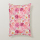 Uma linda almofada de acento floral cor-de-rosa, branca, rosa bege e magenta.