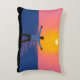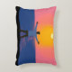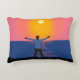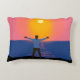 Saudação ao Sol. Um homem está parado numa praia virada para o mar aberto e saudando o sol amarelo com braços levantados.