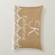 Uma textura na moda de serapilheira do falso do país do vintage com laço branco do damasco na parte superior, com a capacidade para personalizar um monograma e/ou um nome elegantes. Note por favor que é um não serapilheira real travesseiro textured mas um impressão.