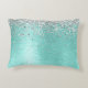 Personalize facilmente este travesseiro de sotaque chique moderno com brilho bonito prateado brilhante em um fundo metálico escovado teal.