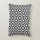 Este travesseiro geométrico preto e branco à moda do acento do teste padrão caracteriza um design decorativo original. O branco meanders ângulo em torno dos carvões que contêm os diamantes brancos. Os ziguezagues pretos fornecem a separação subtil entre os trajetos do enrolamento.