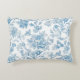 Elevate your bedding with our new accent throw pillow design featuring an elegant Toile-de-Jouy Chinoiseries blue floral pattern, against a custom white background.