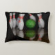 Um travesseiro com uma foto de pinos de boliche.