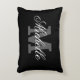 Travesseiro personalizado de sotaque de monograma preto e branco. modelo de tipografia de na moda com nome de página inicial. Almofada de decoração para sofá, sofá ou cama. Trendy design para dormitório, quarto, espaço de vida etc. Personalizar o fundo e a cor da fonte.