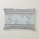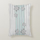 Um travesseiro de destaque com fundo branco ou cinza com faixa de destaque teal, ambos podem ser mudados para qualquer cor para complementar seu decoro doméstico. As listras estão em tons pastéis com um pau de cinza. As flores e/ou faixas são removíveis e o texto pode ser adicionado para personalizar.