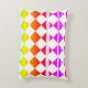 Travesseiro de padrão de diamante colorido brilhante. Vibrante decoração de na moda com verificação de cores múltiplas e branco. Travesseiro design artístico criativo colorido do gradiente do arco-íris. Design de padrões de vários cores brilhantes.