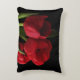 Este travesseiro de sotaque floral de arte apresenta um buquê de flores de tulipas vermelhas escarlate e folhas verdes sobre fundo preto puro. Que presente adorável para jardineiros!