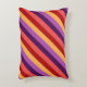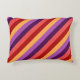 Um travesseiro de sotaque com um padrão colorido de faixas diagonais em vermelho cereja, rosa melão, violeta, roxo de ameixa e amarelo de banana.