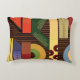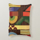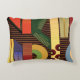 Travesseiro decorativo de ênfase em perspectiva. Perspectiva é um desenho abstrato criado por Vexenwraith e consiste em formas multicoloridas sobre um fundo marrom.