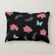 Adicione um toque de elegância sonhadora ao seu espaço com este travesseiro de sotaque preto brilhante! Apresentando um padrão balbucioso de rosas cor-de-rosa macio, borboletas azuis brilhantes e penas púrpuras escuras pastéis, este travesseiro traz uma vibração mágica e cinzenta para qualquer sala. Perfeito para se aconchegar na sua cama, sofá, ou anzol de leitura favorito, é um pedaço de declaração chique que combina brilho, cor e charme.