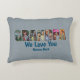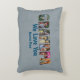 Adicione suas fotos às formas de letras neste travesseiro azul claro. Adicione Nomes e coloque a sua própria mensagem no verso também.